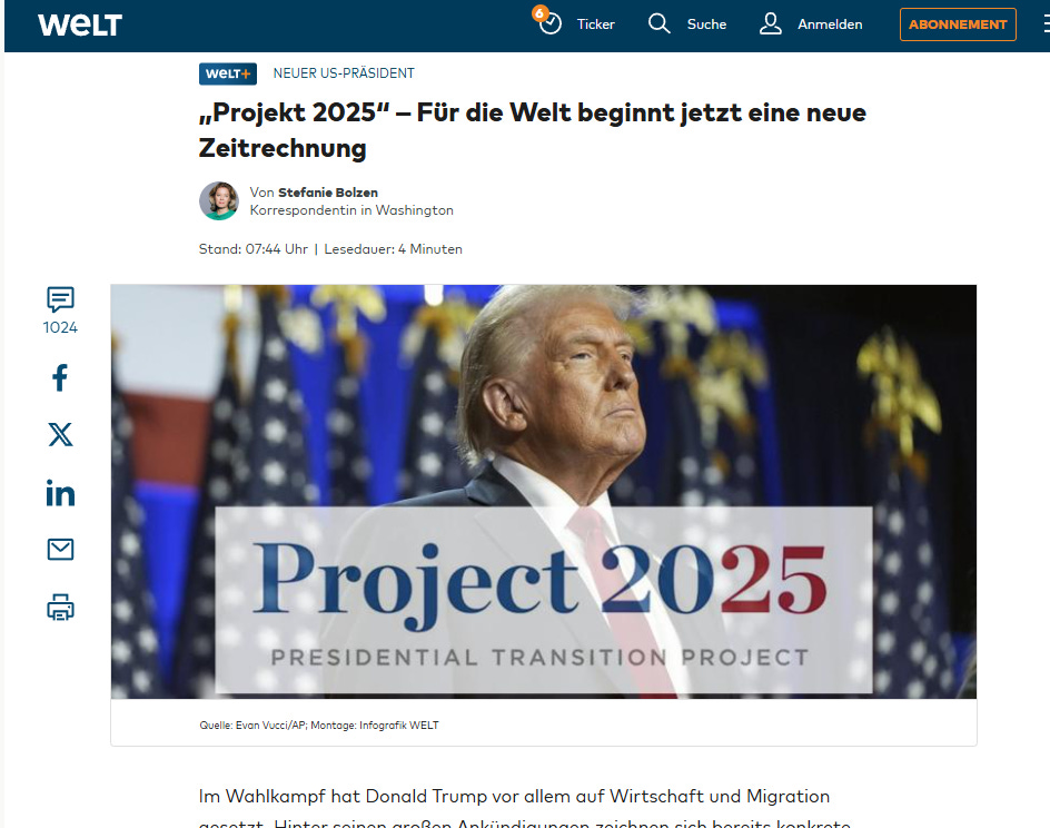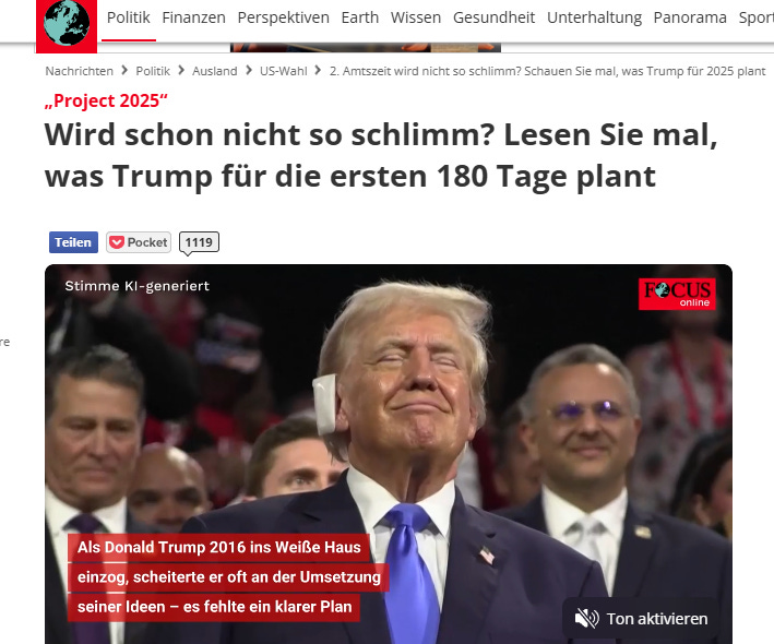 Wie wenig (deutsche) Journalisten wirklich Trump verstehen, merkt man auch daran, wie gestern sowohl von der Tagesschau, als auch von der WELT Project 2025 hervorgehoben wurde als scheinbarem Masterplan von Trump. Project 2025 ist ein Strategiepapier der Heritage Foundation, einem konservativem Think Tank in Washington. Allerdings haben sie dieses Papier wohl eher für ihren Wunschkandidaten Ron DeSantis erstellt und nicht für Trump, der sein eigenes Think Tank hat (“America First Policy Institute”). Trump hatte sogar mal gemeint, dass er mit Project 2025 nix zu tun hat und das nicht seine Ideen wären. Aber das hindert deutsche Journalisten natürlich nicht daran, genau das zu behaupten: